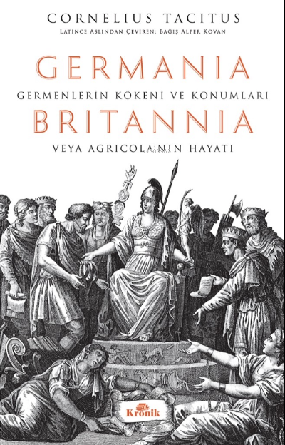 Edward Gibbon'ın ifadesiyle “Tarihçiler arasındaki en felsefi tarihçi” Cornelius Tacitus, yaşamının önemli kısmını Roma İmparatorluğu'nun despot hükümdarlarının saltanatları altında geçirmiş ve eserlerini de bu dönemin etkisinde yazmıştır. İmparatorluk rejiminde bir cumhuriyetçi olarak Roma'nın eski günlerine duyduğu özlem kitaplarına sinmiş, yazdığı tarihi eserlerde, çağının karanlığını kayda geçirerek kendinden sonrakiler için çarpıcı bilgiler ve görüşler bırakmıştır. Tacitus'un en meşhur eseri Germania -Germenlerin Kökeni ve Konumları- yazılmasından yüzyıllar sonra, Nazi Almanyası'nda nasyonal sosyalistlerin İncil'i olarak okunan bir kitap hâlini dahi almıştır. Tacitus burada Germania topraklarını, Germen kabilelerinin kökenlerini, geleneklerini, savaşçılıklarını, kullandıkları silahları, dini inançlarını, yiğitlik ve ahlak anlayışlarını anlatır. Britannia -veya Agricola'nın Hayatı- ünlü komutan Agricola'nın Britannia'daki üstün başarılarını anlatır. Tacitus burada sadece kayınpederinin hatırasını anmakla kalmaz, Britannia'nın coğrafyası, doğası, etnik yapısı ve tarihini de yazar. Agricola'nın, Britannia coğrafyasının koşullarına nasıl uyum gösterdiğine ve yerel kabilelerle nasıl mücadele ettiğine değinir. Elinizdeki kitabın son metni ise Tacitus'un günümüze neredeyse eksiksiz ulaşan son monografisi Hatipler Üzerine Diyaloglar'dır (Dialogus de Oratoribus). Bu eserinde Tacitus, kendi döneminin hitabet anlayışına ve politik ortamına yaptığı yorumlarla kendisinin Cumhuriyetçi kimliğini ön plana çıkartır. Diyaloglar âdeta onun çağına karşı düşüncelerini, geçmişe duyduğu özlemi belgeler.