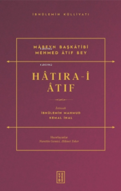 - Hâtıra-i Âtıf, Osmanlı siyasi tarihinin en uzun yüzyılı olarak da tarif edilen 19 asırda, Sultan Abdülmecid'le birlikte başlayan fırtınalı dönemde yaşanan hadiselere dair mâbeyn başkâtibi görevini üstlenmiş önemli bir zatın, Mehmed Âtıf Bey'in tespitlerinden oluşmaktadır. Eserin istinsahını İbnülemin Mahmud Kemal, babası Mehmed Emin Paşa ve kardeşi Ahmed Tevfik gerçekleştirmiştir. Eserin, gerek müellifin Horhor Mahallesi'ndeki evinde gerekse İbnülemin Mahmud Kemal'in Beyazıt'taki Sarı Köşk olarak bilinen evinde yapılan sohbetler esnasında dile getirilen ve bilinen yazılı kaynaklarda geçmeyen ve rastlanması pek de mümkün olmayan anekdot ve hatıraların kayda alınması arzusu sonrası ortaya çıktığı söylenebilir. Hiçbir yerde duymadığı ve duyamayacağı malumatlar karşısında heyecana kapılan ve anlatılanları bir yere kaydetmeyi arzu eden İbnülemin'in de ısrarıyla Mehmed Âtıf Bey, kendisinin şifahen aktardığı bilgilerin kaleme alınmasına müsaade etmiştir. Osmanlı'nın son dönemini saraylı birinden, bir mâbeyn başkâtibinden ve İbnülemin'in ilaveleriyle okumak, kaynaklarda yer almayan bilgilere erişmek isteyenler için paha biçilmez bir eser: Hâtıra-i Âtıf.Stok Kodu:9786258094510Boyut:135-210-0Sayfa Sayısı:264Basım Yeri:İstanbulBaskı:1Basım Tarihi:2022-05-06Kapak Türü:KartonKağıt Türü:Kitap KağıdıDili:Türkçe
