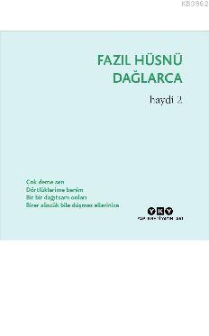 - Yapı Kredi Yayınları, Fazıl Hüsnü Dağlarca'nın ölümünün ardından kitaplarına girmemiş şiirleri "Kaçaklar" üst başlığıyla yayımlamaya başlamıştı. İşte bu "Haydi 2" kitabı, "Kaçaklar" dizisinin ikinci cildidir. Aynı zamanda Dağlarca'nın 1968'de yayımlanan "Haydi" adlı dörtlüklerden oluşan kitabının devamı niteliğindedir. Bu kitapla, Dağlarca'nın kamuya açılmamış arşivlerinde olduğu bilinen büyük bir "dörtlük" toplamı gün yüzüne çıkıyor. Çok deme sen Dörtlüklerime benim Bir bir dağıtsam onları Birer sözcük bile düşmez ellerinizeStok Kodu:9789750840319Boyut:160-160-0Sayfa Sayısı:424Basım Yeri:İstanbulBaskı:1Basım Tarihi:2017-08-18Kapak Türü:KartonKağıt Türü:2.HamurDili:Türkçe