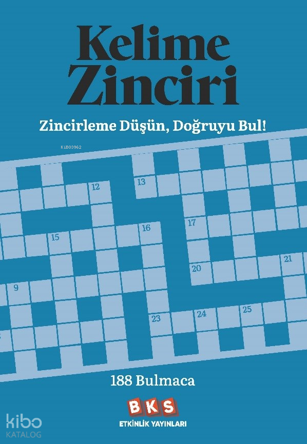 - Kelime Zinciri, kelimelerin belirli bir düzen içinde birbirine bağlanarak yerleştirildiği, dikkat ve mantık gerektiren özgün bir bulmaca türüdür. Bu kitapta yer alan 188 kelime zinciri, yetişkin okurlara akıcı ve tatmin edici bir çözüm deneyimi sunar. Her bulmaca, verilen bir başlangıç kelimesiyle başlar. Farklı uzunluktaki kelimeler, pano üzerindeki boşluklara zincirleme biçimde yerleştirilir. Doğru bağlantılar kurulduğunda yapı tamamlanır ve kelimeler anlamlı bir bütün hâline gelir. Kelime bilgisini, odaklanmayı ve planlı düşünmeyi bir arada kullandıran bu bulmacalar; zihni dinç tutmak, kısa molaları verimli geçirmek ve kelimelerle baş başa kalmak isteyen yetişkinler için hazırlandı. Kelimeler Bağlanıyor, Zihin Hızlanıyor! Serinin diğer kitaplarını da sevebilirsin. Kelime Bulmaca Sudoku Çengel Bulmaca Çapraz Bulmaca Kod Bulmaca Sarmal Bulmaca Mozaik BulmacaStok Kodu:9786259284279Boyut:195-275-Sayfa Sayısı:112Baskı:1Basım Tarihi:2026-03-11Kapak Türü:KartonKağıt Türü:Kitap KağıdıDili:Türkçe