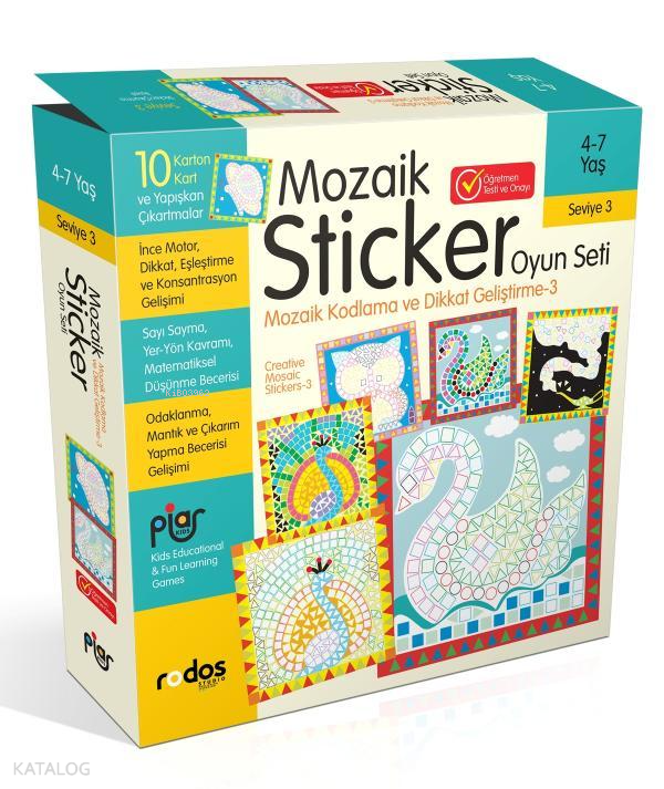 Mozaik Sticker (Çıkartma) Oyun Seti / Mozaik Kodlama ve Dikkat Geliştirme / 3 Seviye / 4-7 Yaş