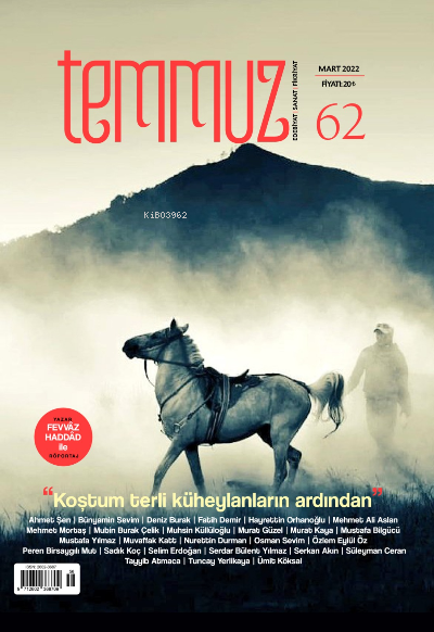 Edebiyat, sanat ve fikriyat alanlarında birçok türden eseri barındıran Temmuz'un 62 sayısının